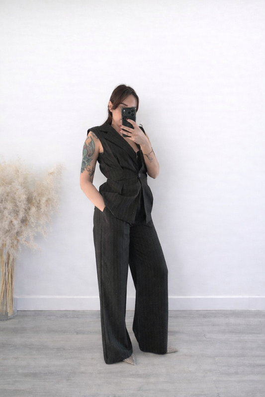 Set gessato,Gilet sfiancato e Pantalone elasticizzato